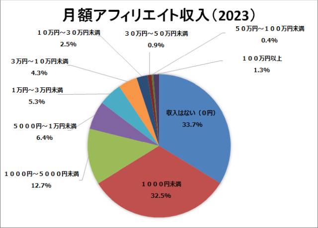 日本アフィリエイト協議会のデータですが、6割以上が月額収益が1000円未満です。