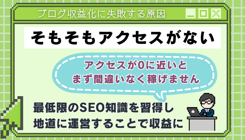例えば、競合の激しいジャンルを選んでいたり、読者ニーズとずれた内容を発信していたり、アクセス解析を活用できていないだけかもしれません。
