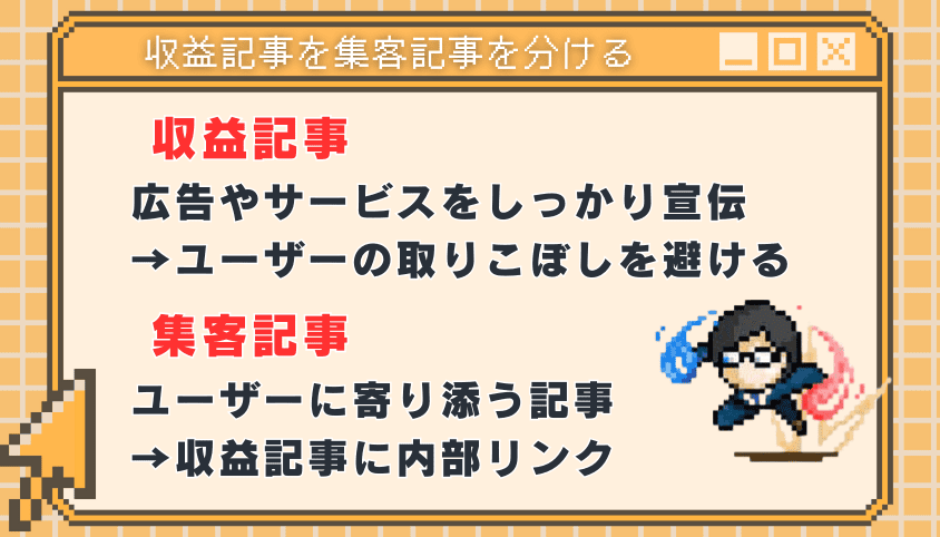 収益記事と集客記事を分けて内部リンクを整える